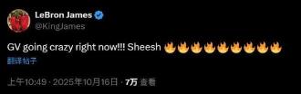 文森特的出色表現(xiàn),讓詹姆斯也是通過(guò)社媒點(diǎn)贊表示:“GV(文森特)要瘋了!嘶~火火火火火火火火火。